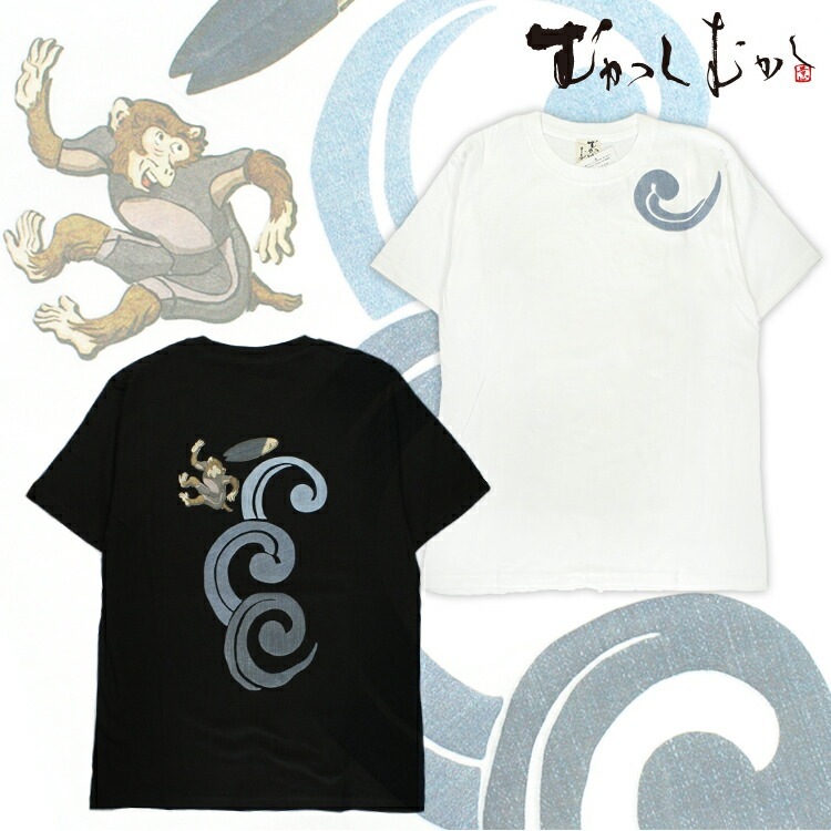 和柄 Tシャツ メンズ 半袖 京都 和柄ブランド 手描友禅 京高盛絵 プリント むかしむかし 青猿サーフィン