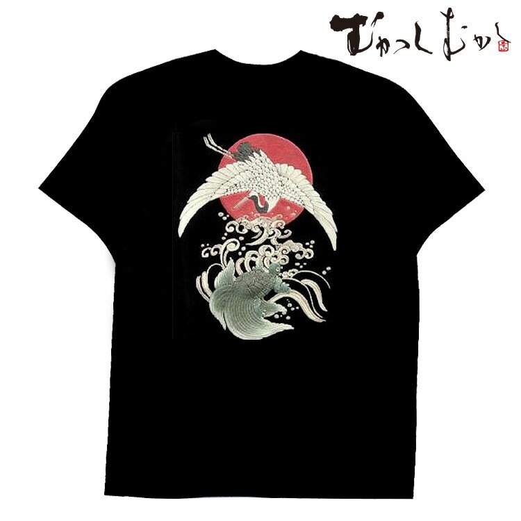 和柄 Tシャツ メンズ 半袖 京都 和柄ブランド 手描友禅 京高盛絵 プリント むかしむかし 鶴亀 黒 ブラック