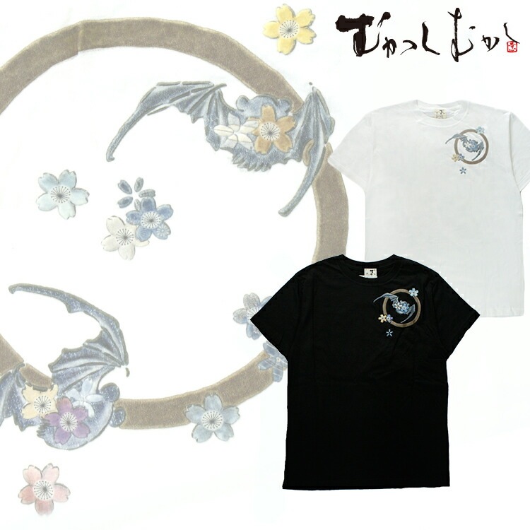 和柄 Tシャツ メンズ 半袖 京都 和柄ブランド 手描友禅 京高盛絵 プリント むかしむかし 丸紋蝙蝠 コウモリ