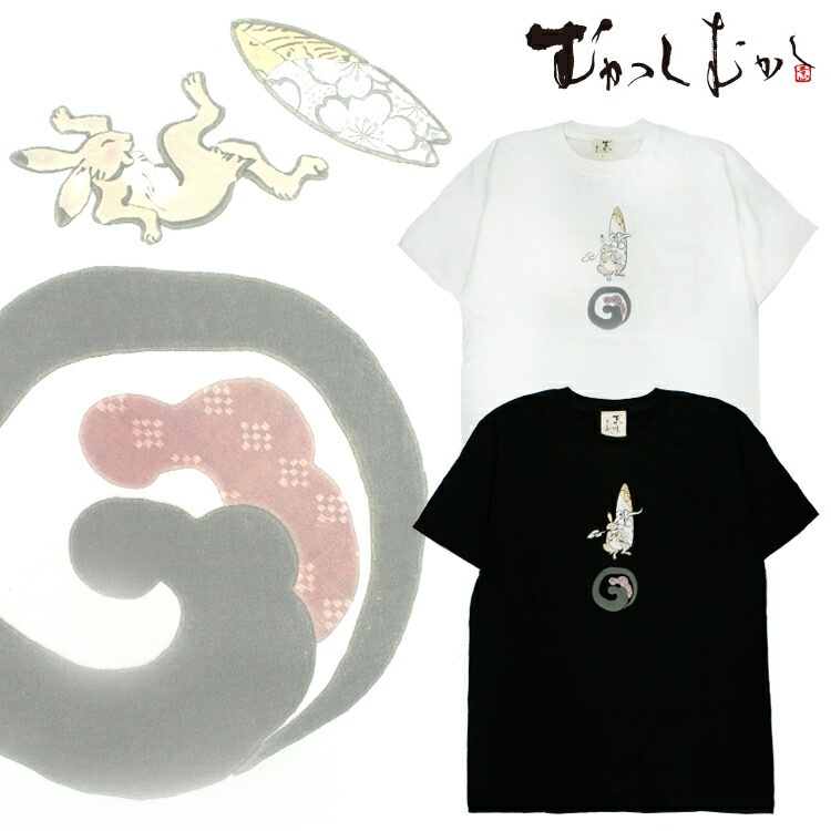 和柄 Tシャツ メンズ 半袖 京都 和柄ブランド 手描友禅 京高盛絵 プリント むかしむかし 黒波兎