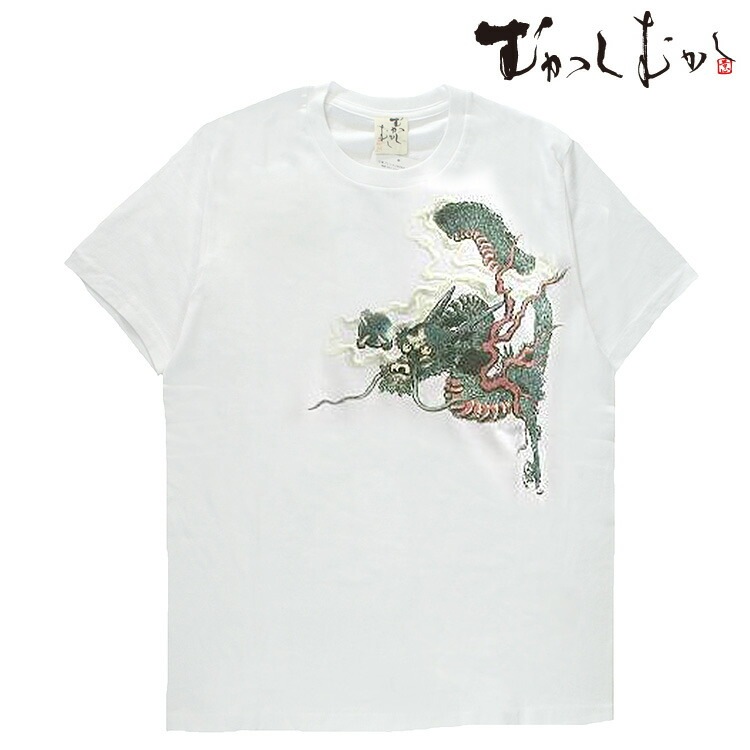 和柄 Tシャツ メンズ 半袖 京都 和柄ブランド 手描友禅 京高盛絵 プリント むかしむかし 緑龍 白 ホワイト