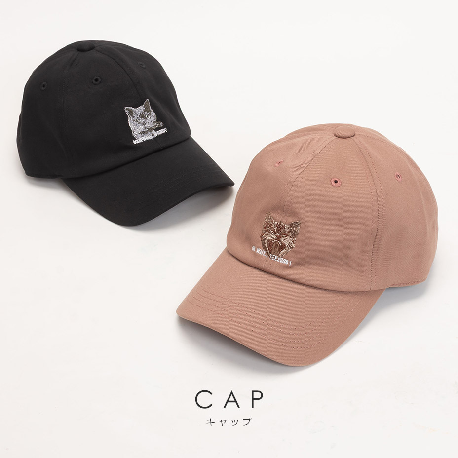 猫刺繍×ロゴ深型キャップ [ VS3-140 ]