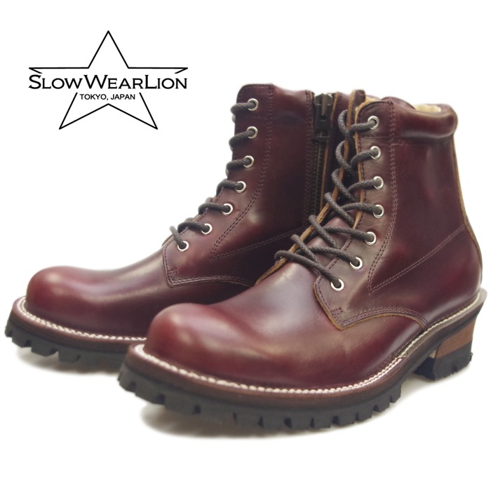 スローウェアライオン プレーンミッドブーツ SLOW WEAR LION OB-8593H バーガンディー ブーツ メンズ ファス...