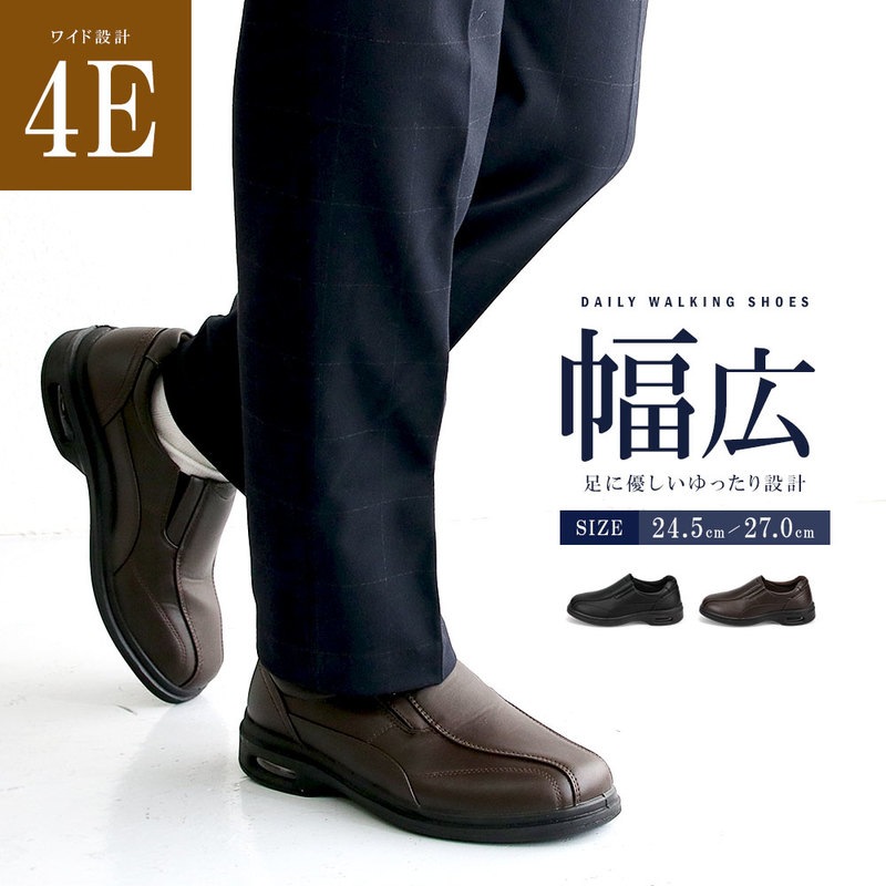 コンフォートシューズ メンズ 4e 黒 幅広 ウォーキングシューズ ビジネスシューズ 紳士靴 シューズ スリッポン ブラック ブラ...