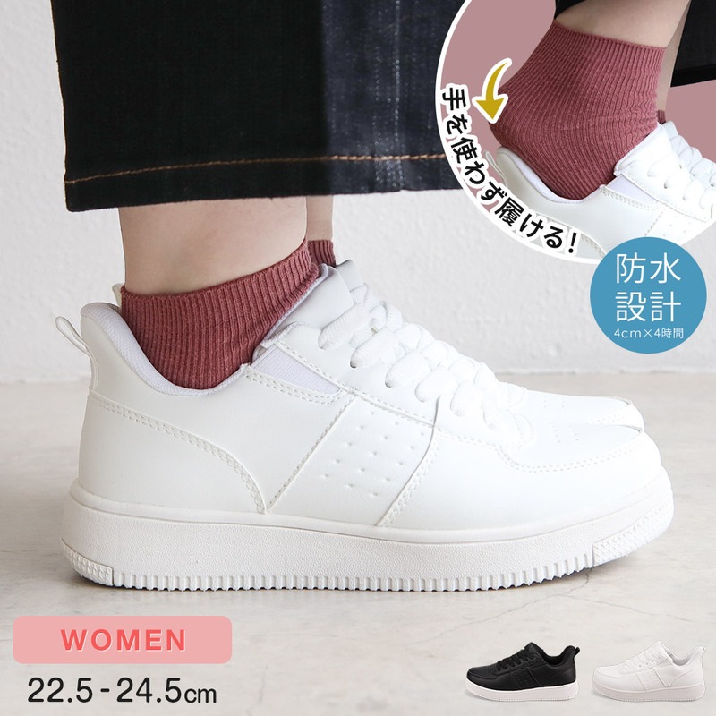 スリッポン レディース 黒 防水 ローカット 立ったまま履ける カジュアル 室内 ハンズフリー レインシューズ 靴 ブラック ...