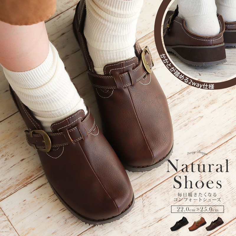 コンフォートシューズ かかとが踏める 2WAY レディース サボサンダル スリッポン バブーシュ カジュアル 疲れにくい 黒 ブラ...
