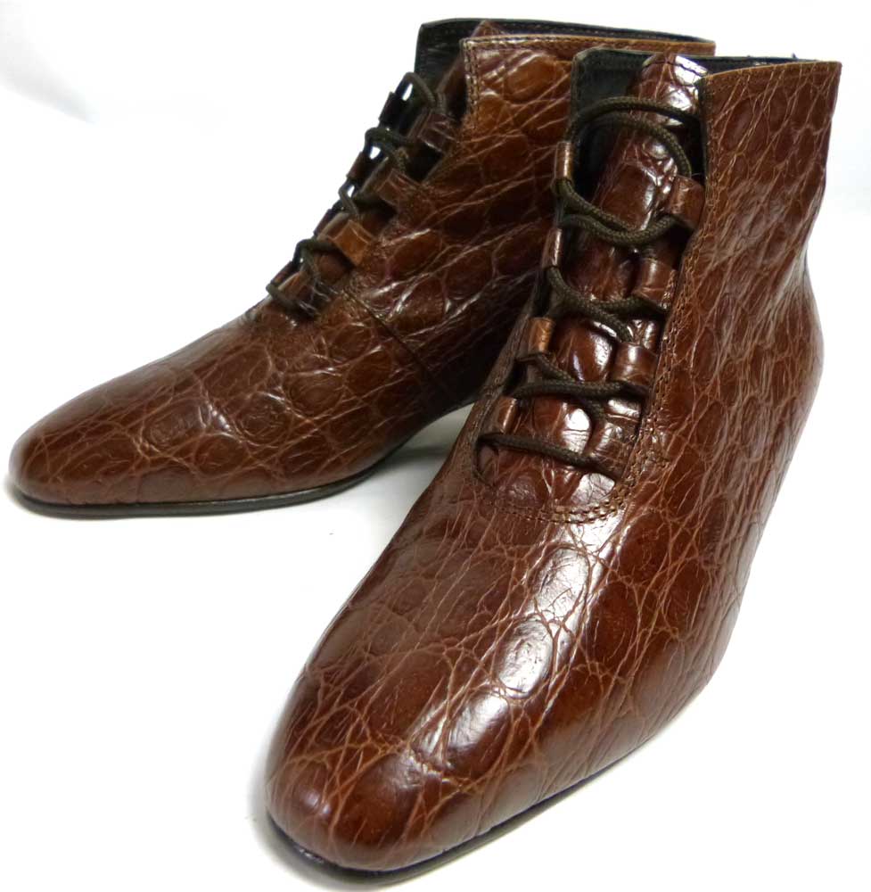 イタリア製 Cristina Floreani クリスティーナ 型押しレザーショートブーツ 35(22cm相当)(レディース)【中...