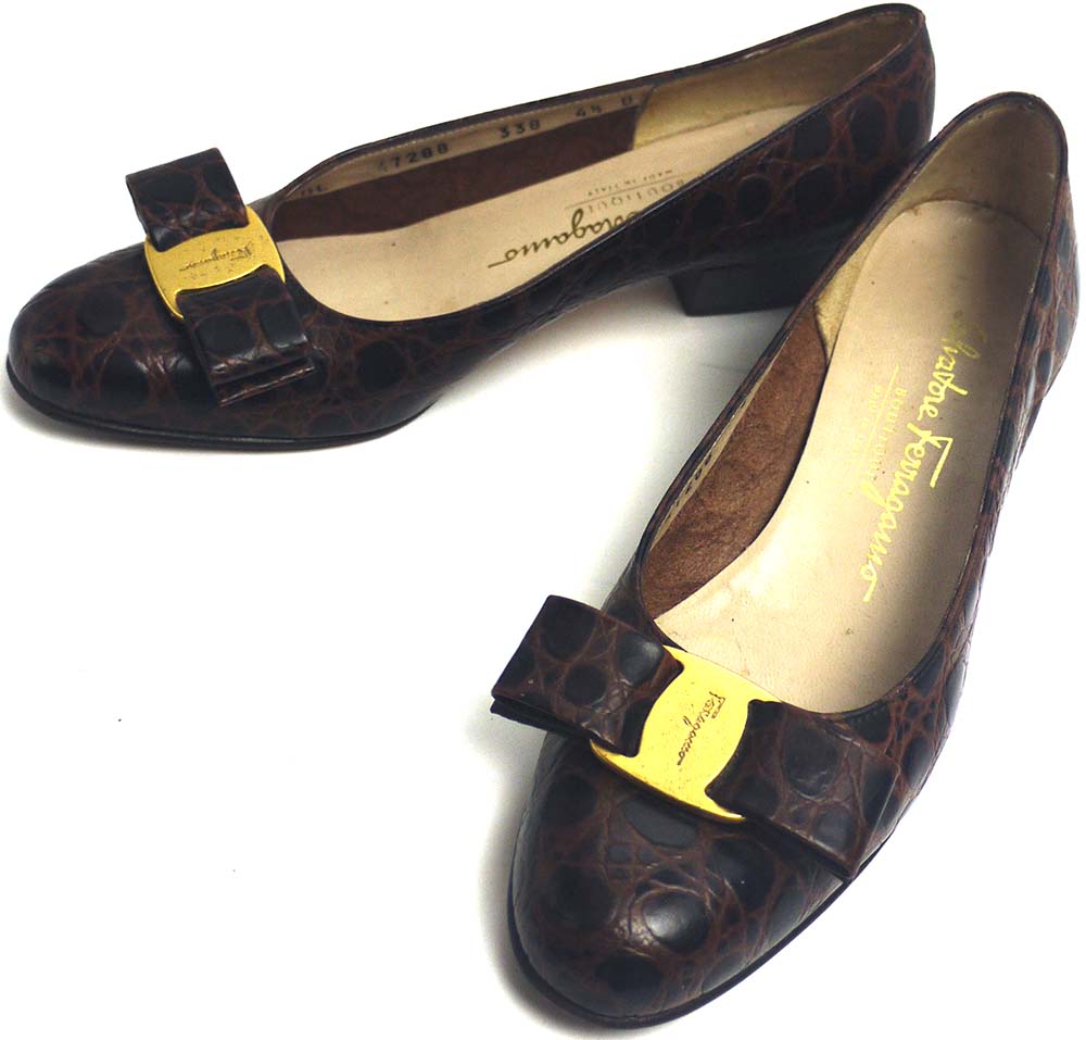 イタリア製 サルヴァトーレ フェラガモ / Salvatore Ferragamo 型押し ヴァラリボンレザーパンプス 7C(24...