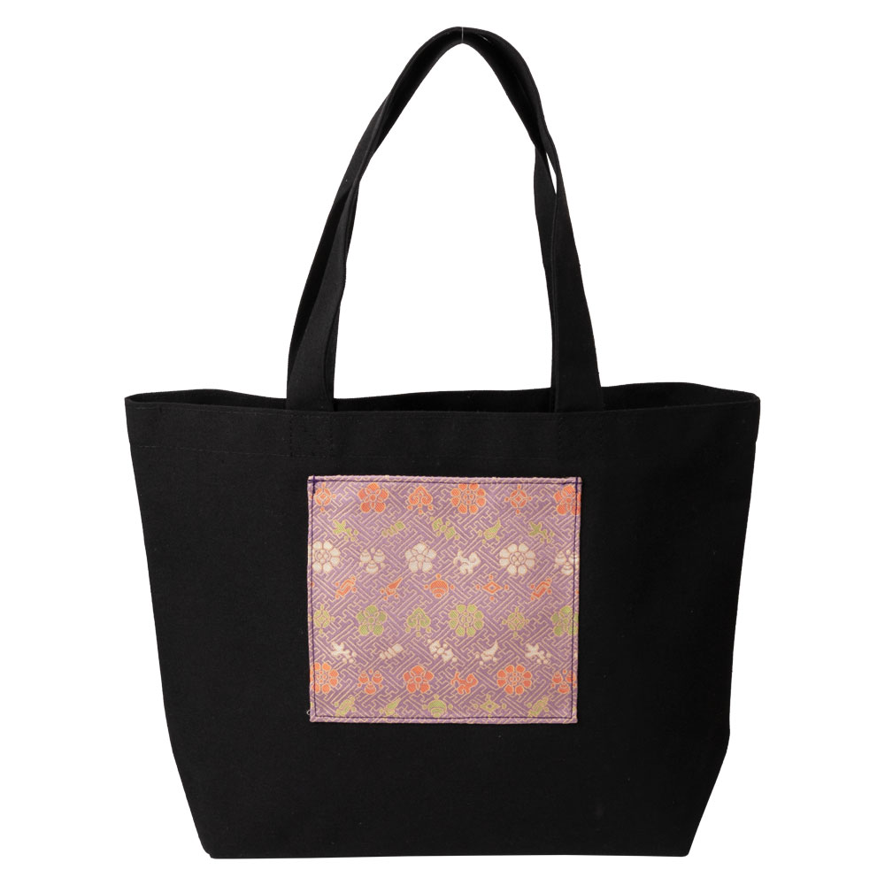 京都 あらいそ 西陣織名物裂 エコトートバッグ004 紗綾形花文錦 内側防水ビニール仕様の丈夫なエコバッグ 正絹織物 Kyoto ...