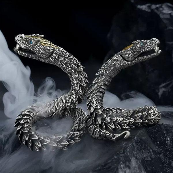メンズ スネーク ブレスレット 蛇 白蛇 バングル チェーン シルバーブレスレット 開運 アンティーク風 アクセサリー 贈り物 ギ...