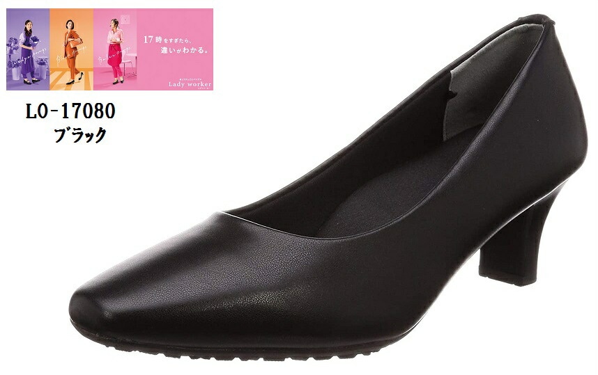 Lady woker(レディワーカー)LO-17080 アシックス商事 幅広4E相当 5.5cmヒール スクエアートゥ プレーン...