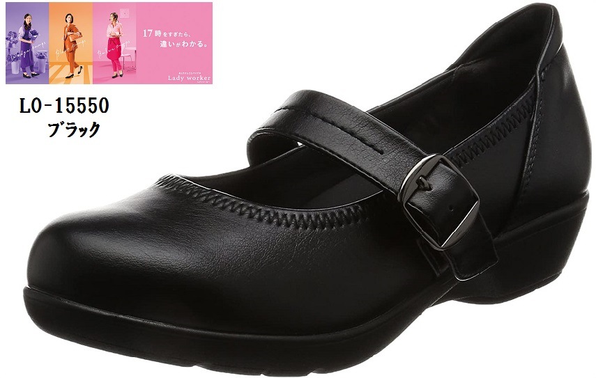 Lady woker(レディワーカー)LO-15550 アシックス商事 幅広3E相当 3.4cmウエッジヒール 甲ストラップラウ...