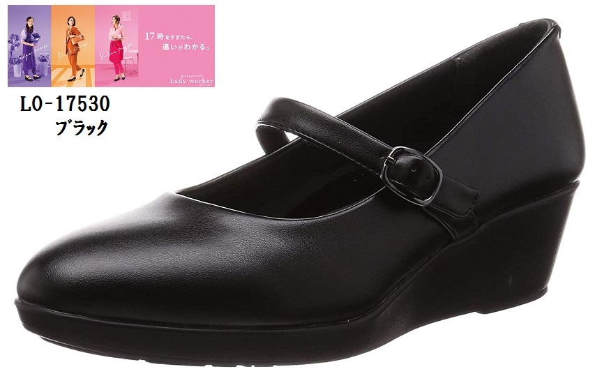 Lady woker(レディワーカー)LO-17530 アシックス商事 幅広3E相当 5cmウェッジヒール 甲ストラップラウンド...