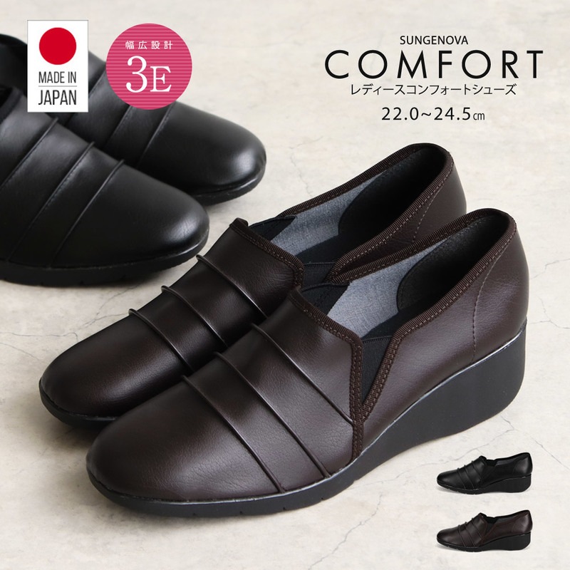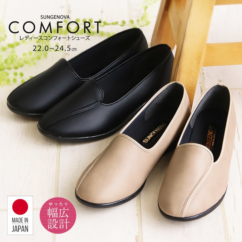 コンフォートシューズ レディース おしゃれ 幅広 軽量 ゆったり スリッポン カジュアルシューズ 日本製 国産 黒 ブラック ベー...