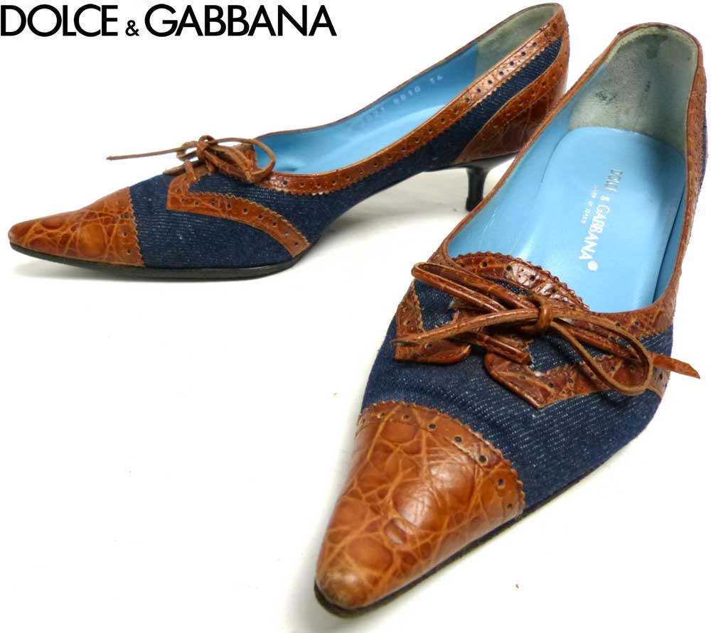 イタリア製 ドルチェ&ガッバーナ DOLCE&GABBANA デニム&レザー パンプス / ヒール 36(23cm相当)(レディー...