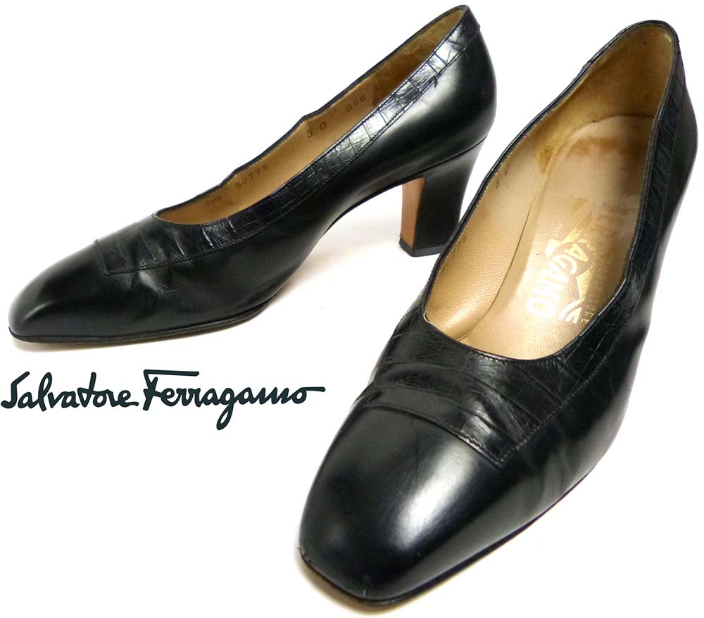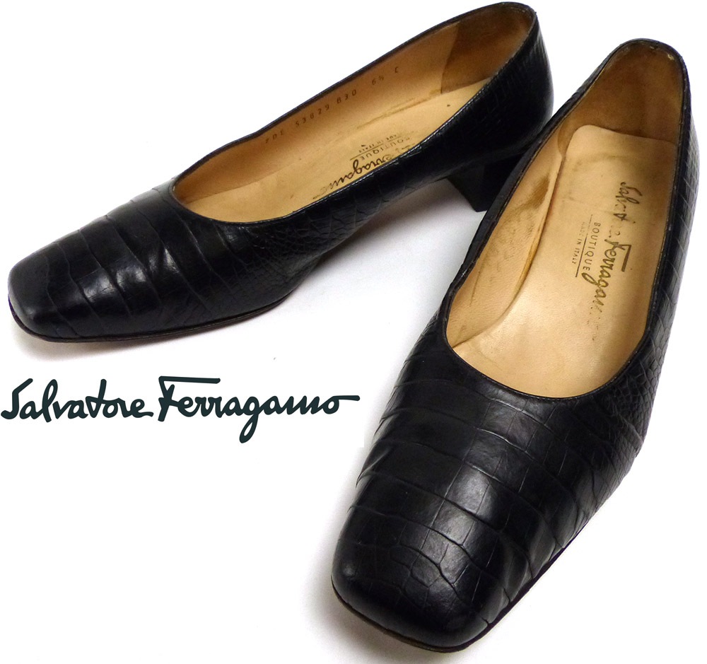 イタリア製 Salvatore Ferragamo サルヴァトーレ フェラガモ 型押しレザー パンプス 6 1/2C(23.5-2...