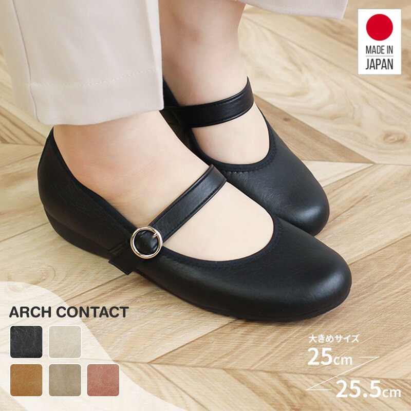 アーチコンタクト パンプス 靴 レディース 日本製 ストラップ メリージェーン ローヒール ウェッジソール アーモンドトゥ 軽量 ...