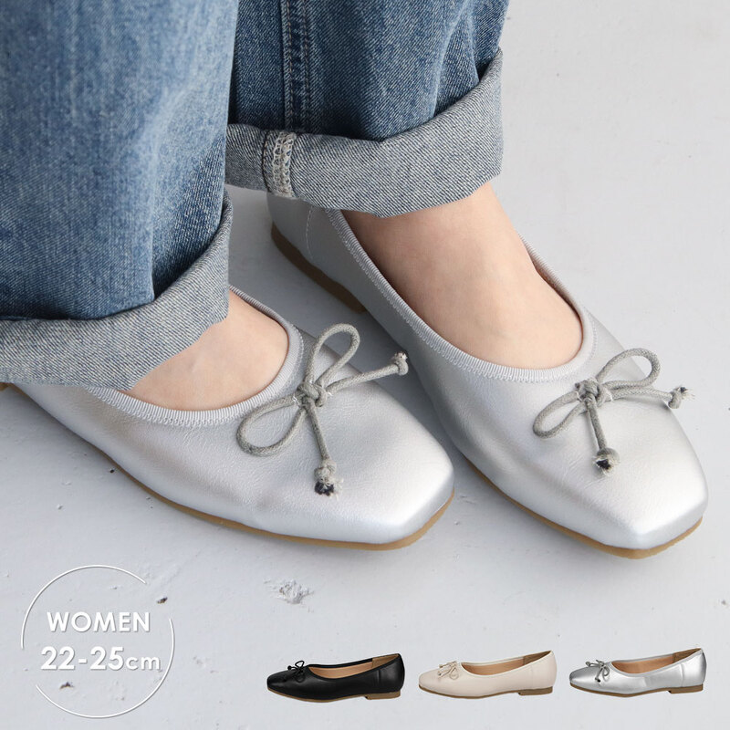 パンプス ローヒール スクエアトゥ 歩きやすい ぺたんこヒール 靴 きれいめ 黒 ブラック アイボリー シルバー リボン 2311