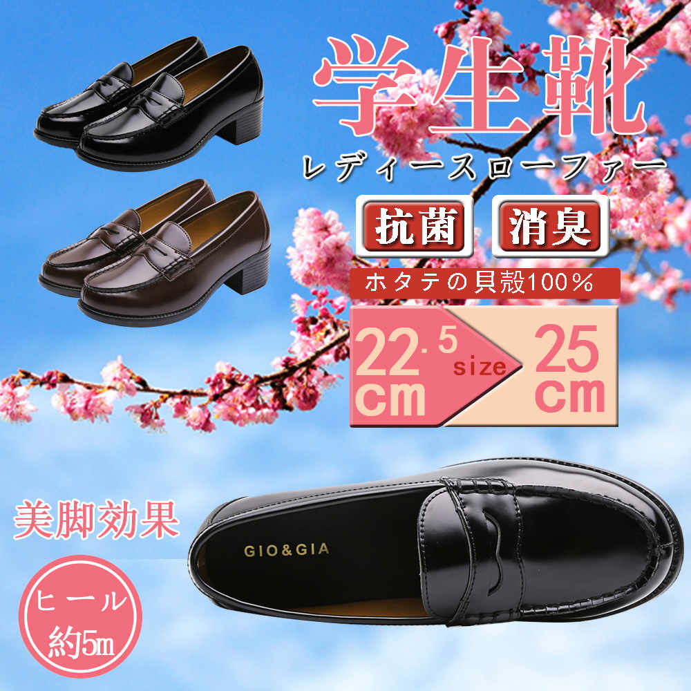 [GIO&GIA] (平日24時間以内発送) レディース 女子 学生靴 ヒールアップ(+5cm) スクール ローファ クッション...