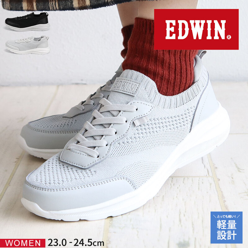 エドウィン スニーカー レディース ローカット 軽量 ニット 履きやすい 靴 カジュアル 疲れにくい 黒 ブラック グレー ED...