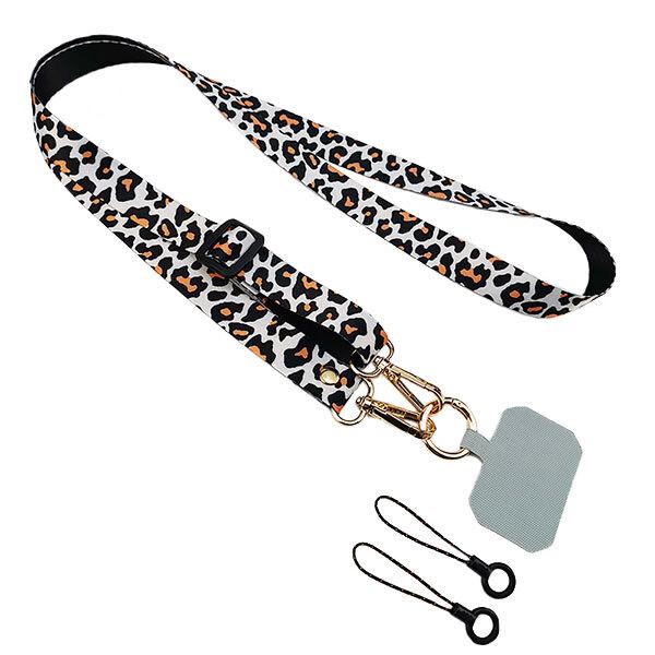 スマホ用 ロングストラップ ヒョウ柄 バッグに付変え ハンズフリー 盗難防止 落下防止 おしゃれ