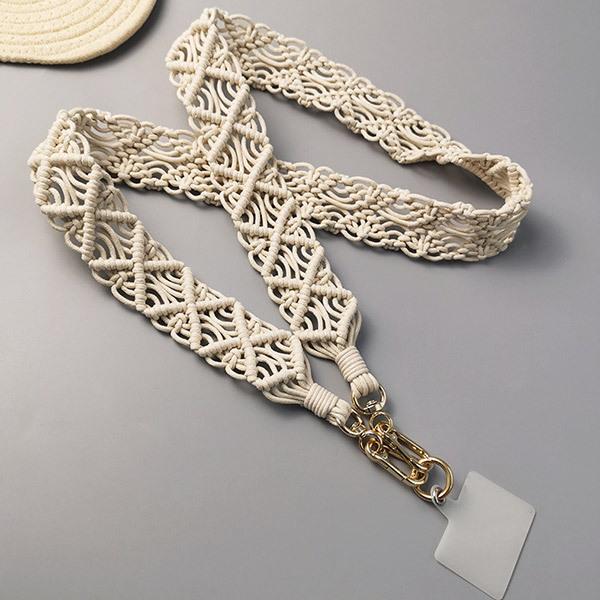 カギ編み スマホショルダーストラップ ホワイト 涼しげ バックに付け変え 紛失予防 オシャレ 斜め掛け