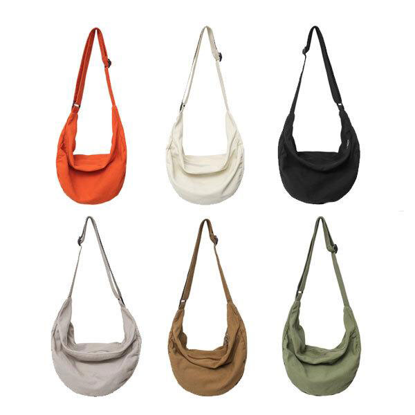 ショルダーバッグ ハーフ ムーンバッグ 斜めがけ キャンバス 布製 バッグ ジッパー付き A4サイズ 通学 通勤 旅行 軽量 シン...