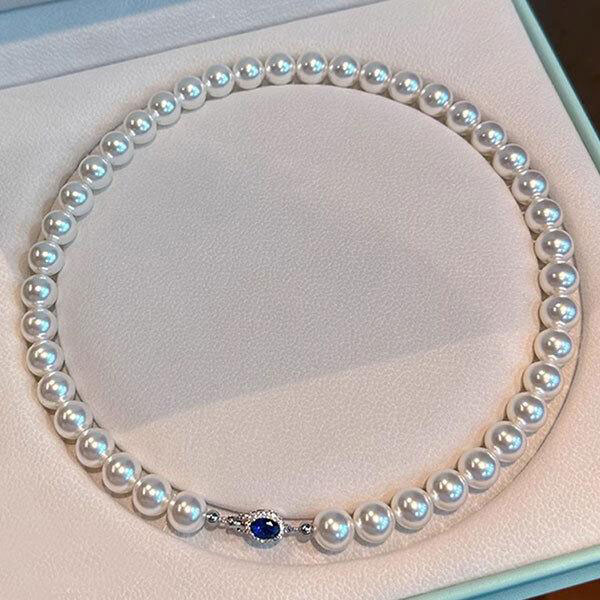 レディース ビーズネックレス ブルー ラインストーン フェイクパール 直径 8mm 10mm アクセサリー ネックレス パーティー...