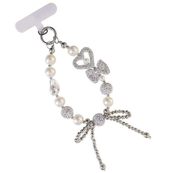 スマートフォン用 ハンドストラップ リボン型 ハート型 ビーズ ラインストーン フェイクパール 落下防止 キラキラ おしゃれ 可...