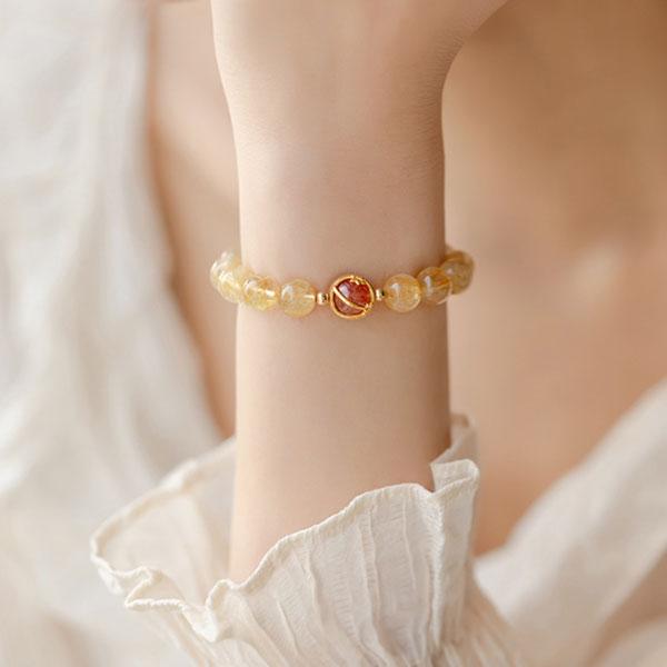 開運数珠 ブレスレット ゴールド仕上げ 水晶ブレスレット 腕輪 念珠 ビーズブレスレット 縁起担ぎ ファッションアクセサリー 男女...