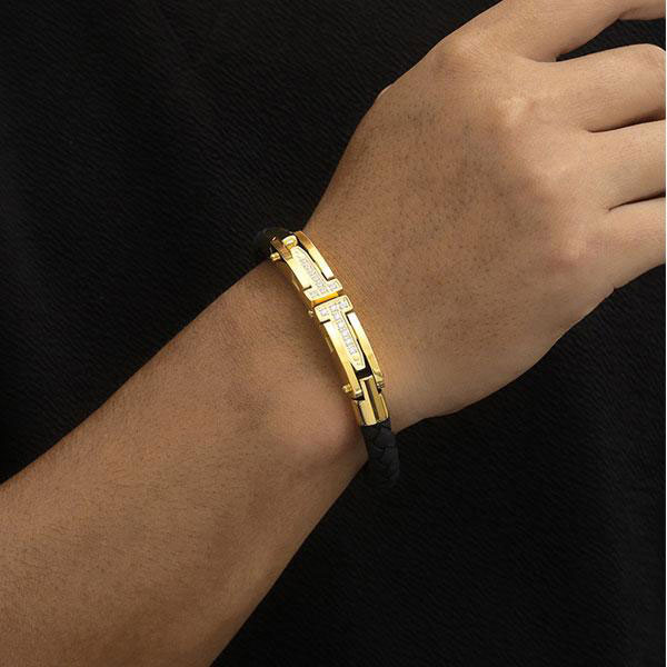 メンズ ラインストーン付き 編み込み レザー ブレスレット バングル 腕輪 留め具 ジュエリー アクセサリー キラキラ スタイル ...