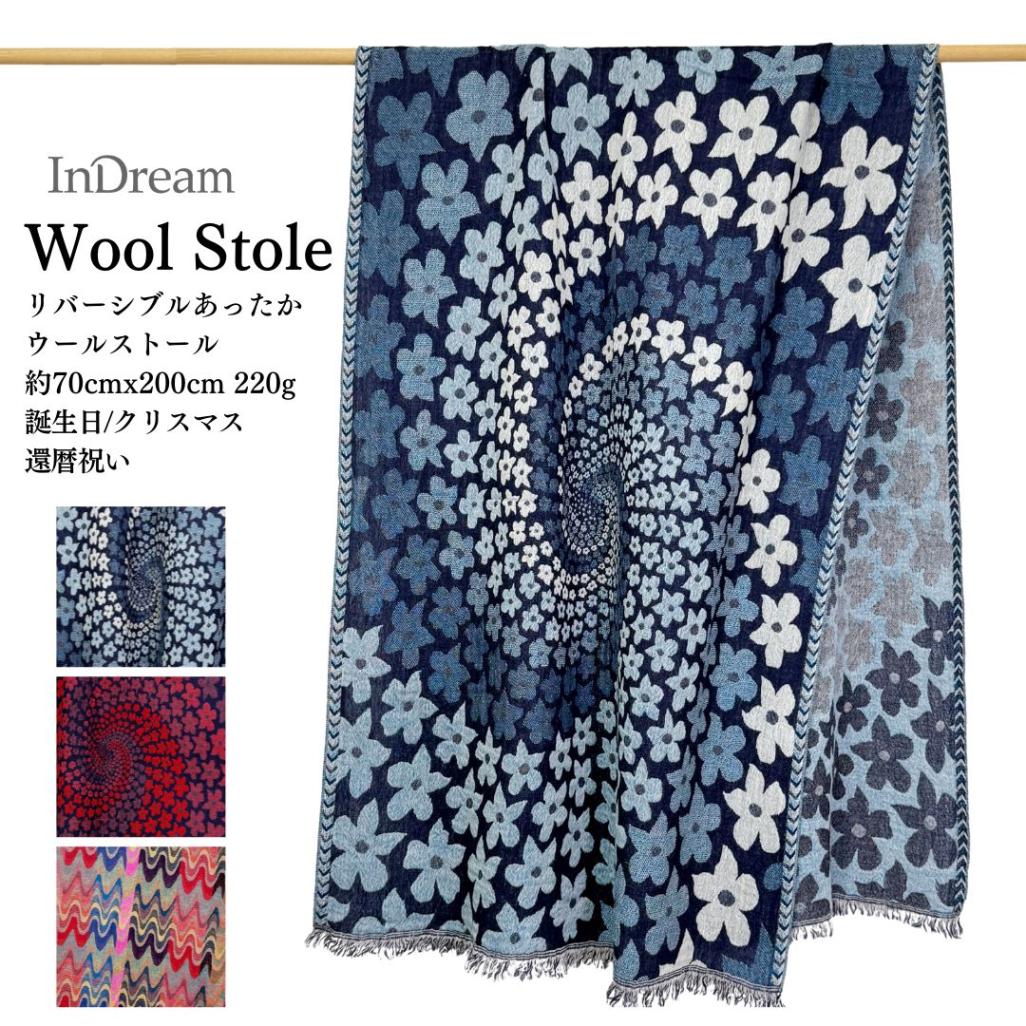 InDream ペイズリー柄 ウール ストール リバーシブル 大判 [70cmx200cm] 赤 紫 古希 還暦 祝い 誕生日 プ...