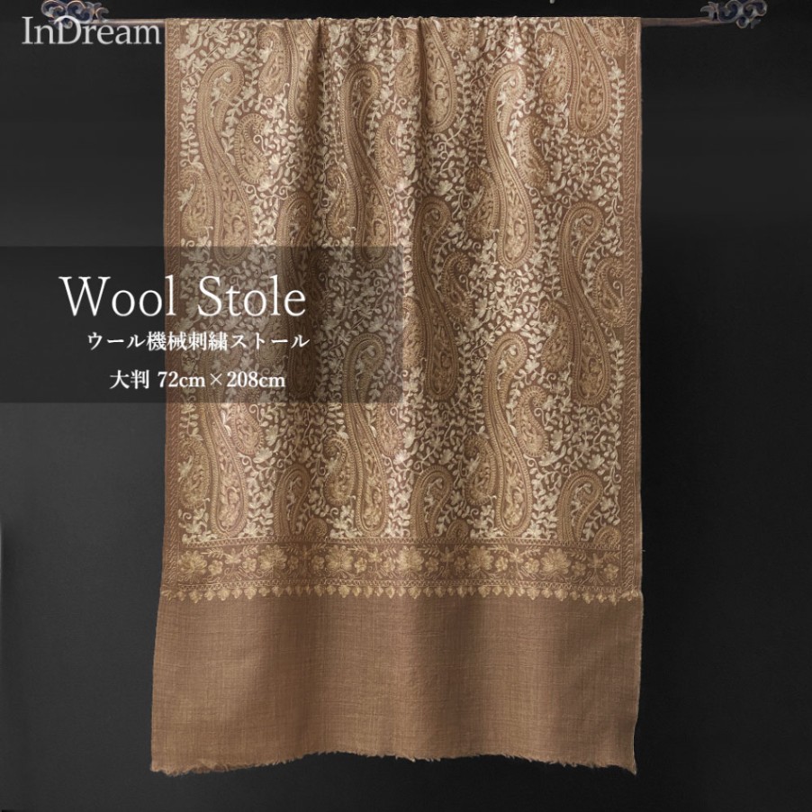 InDream 機械刺繍ストール ウール マロン ベージュ 70cm巾 着物ショール 結婚式 パーティー クリスマス ギフト おし...