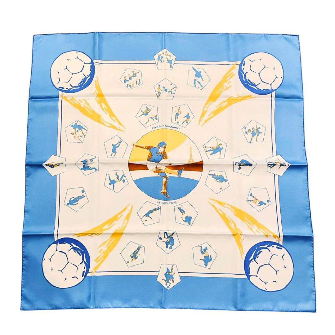 HERMES エルメス スカーフ カレ90 『Vive les champions!(ビバチャンピオン)』 サッカー柄 シルク ブ...