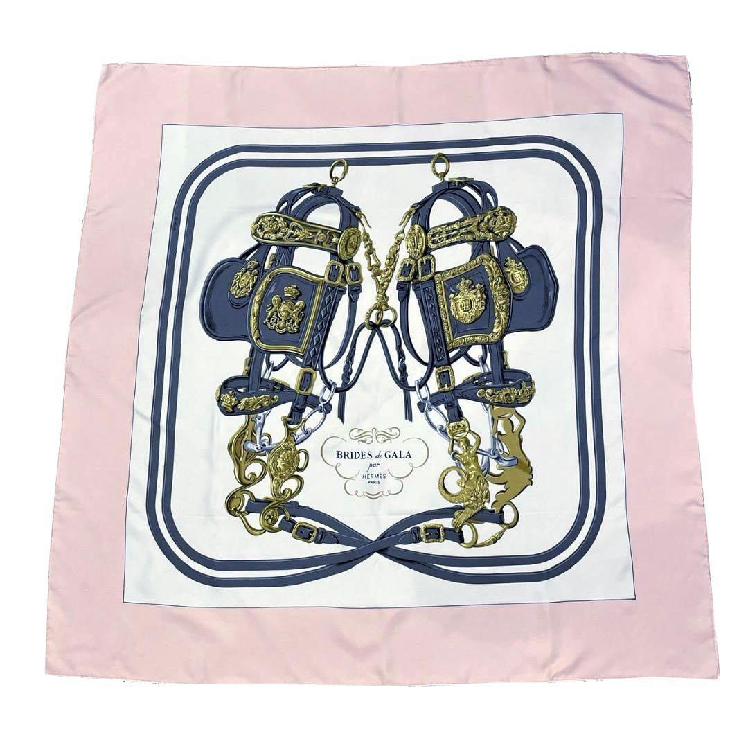 HERMES エルメス スカーフ カレ90 『BRIDES de GALA(式典用馬勒)』シルク ピンク ホワイト