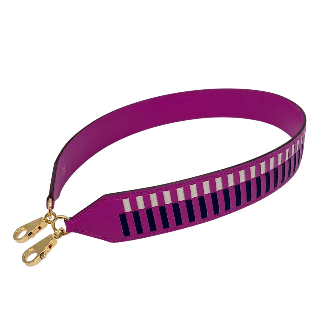 HERMES エルメス バンドリエール トレサージュ ドゥキュイール 40 エプソン ゴールド金具 パープル ネイビー ホワイト ...