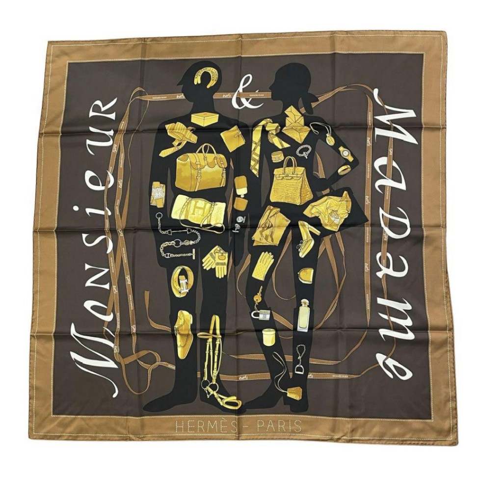 HERMES エルメス カーフ カレ90 『Monsieur et Madame(ムッシュー&マダム)』 シルク ブラウン系 20...