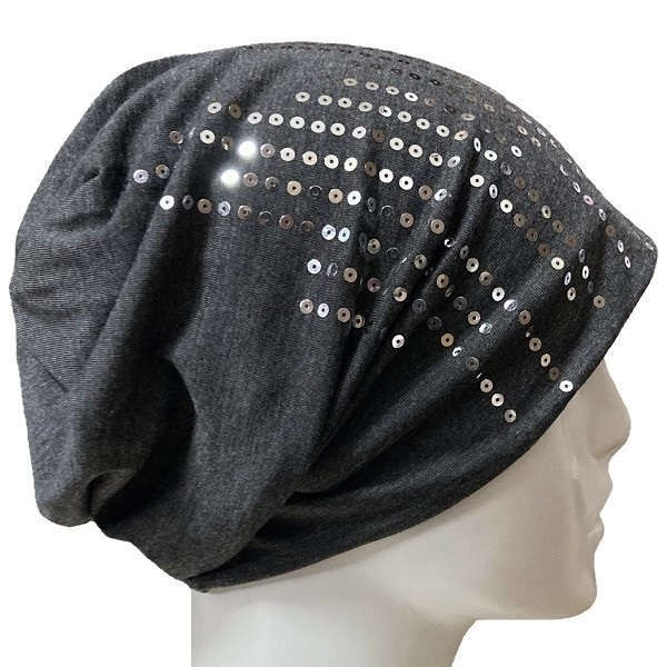【抗がん剤治療】【医療用帽子】【ケア帽子】 スパークルシークインキャップ:グレー