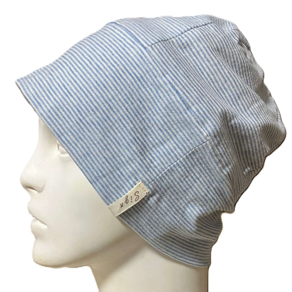 【抗がん剤治療】【医療用帽子】【ケア帽子】アイコニックボーダーシャロット:ブルー