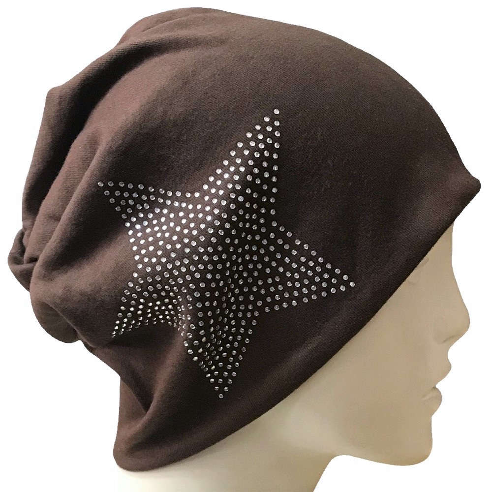 【抗がん剤治療】【医療用帽子】【ケア帽子】 スターラインストーンキャップ:ブラウン