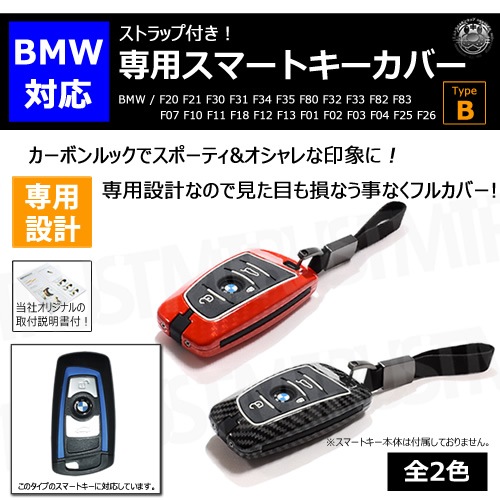 BMW 専用 スマートキー カバー TypeB ストラップ付 レッド カーボン ブラック カーボン F20 F21 F30 F31...