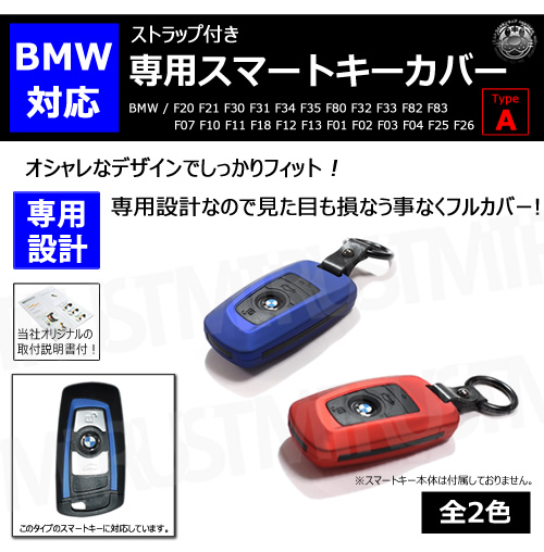 BMW 専用 スマートキー カバー TypeA ストラップ付 レッド ブルー F20 F21 F30 F31 F34 F35 F8...