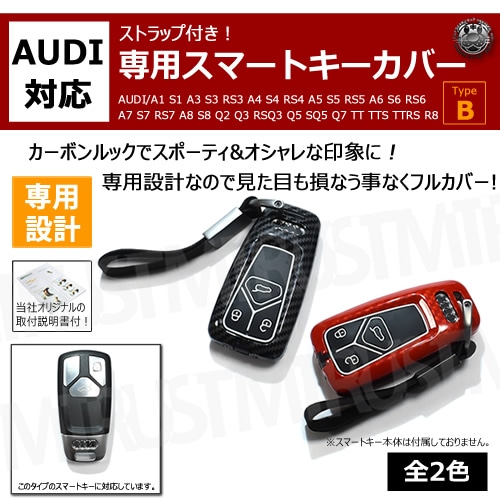 アウディ 専用 スマートキー カバー TypeB ストラップ付 レッド ブラック カーボン A1 S1 A3 S3 RS3 A4 ...