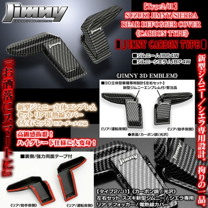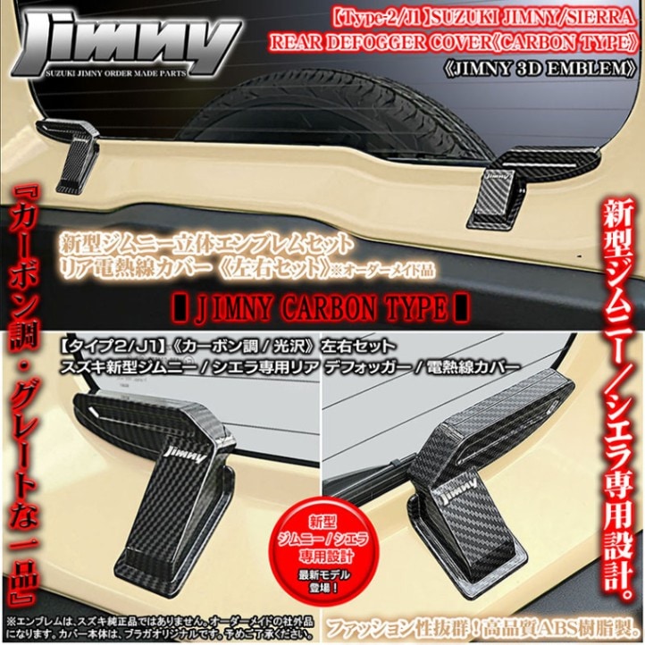 ジムニーエンブレム付【タイプ2/J1】スズキJB64W新型ジムニー用 リア デフォッガー/電熱線 配線 カバー[カーボン調/光沢]...