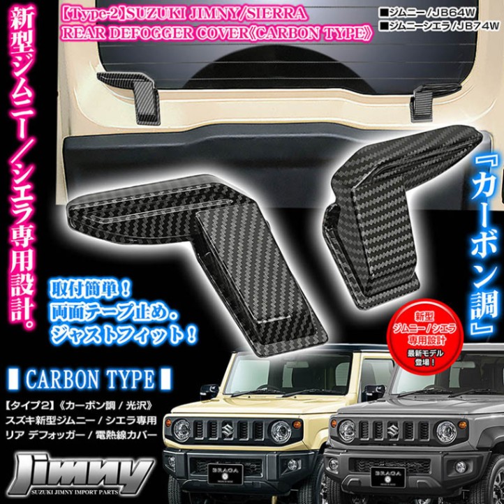 【タイプ2】スズキ ジムニーJB74W新型シエラ用 リア デフォッガー/電熱線 配線 カバー[カーボン調/光沢]左右セット/ABS...