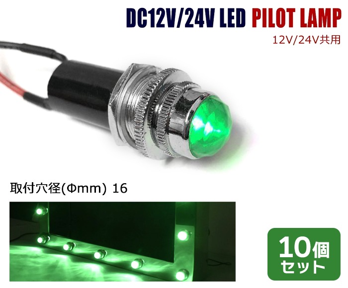 10個セット 汎用 埋め込み 12V / 24V パイロットランプ LED バルブ ダイヤカット グリーン デコトラ ナンバー フ...