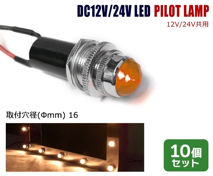 10個セット 汎用 埋め込み 12V / 24V パイロットランプ LED バルブ ダイヤカット オレンジ デコトラ ナンバー フ...