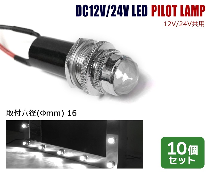 10個セット 汎用 埋め込み 12V / 24V パイロットランプ LED バルブ ダイヤカット クリア ホワイト デコトラ ナン...