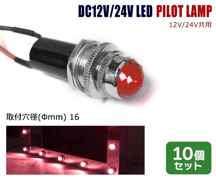 10個セット 汎用 埋め込み 12V / 24V パイロットランプ LED バルブ ダイヤカット レッド デコトラ ナンバー フレ...