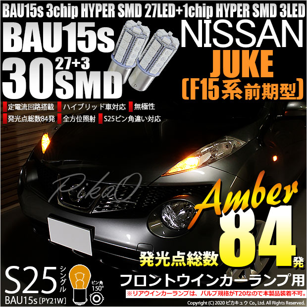 【即納】【メール便可】ニッサン ジューク [F15系 前期]対応 フロントウインカーランプ用LED S25s[BAU15s]ピン角...